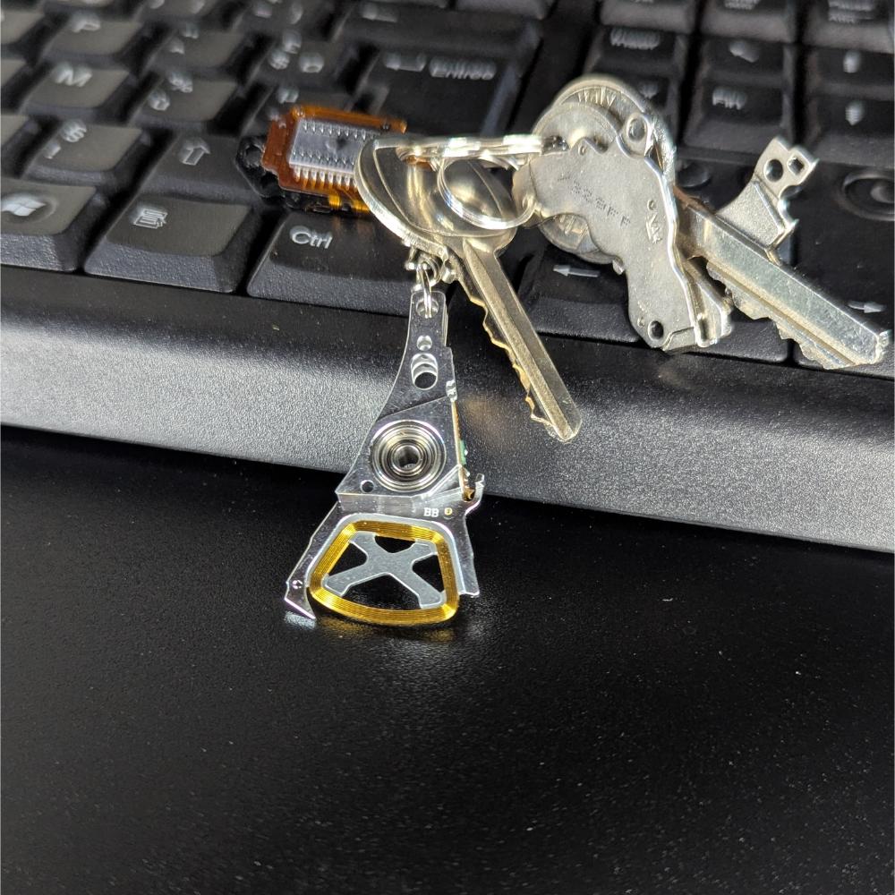 Donnez une seconde vie à la technologie avec style et intelligence. Ce porte-clés unique n'est pas seulement un accessoire esthétique upcyclé à partir d'un bras de lecture de disque dur : il intègre également, dans un design astucieux, les aimants surpuissants d'origine du même disque dur.